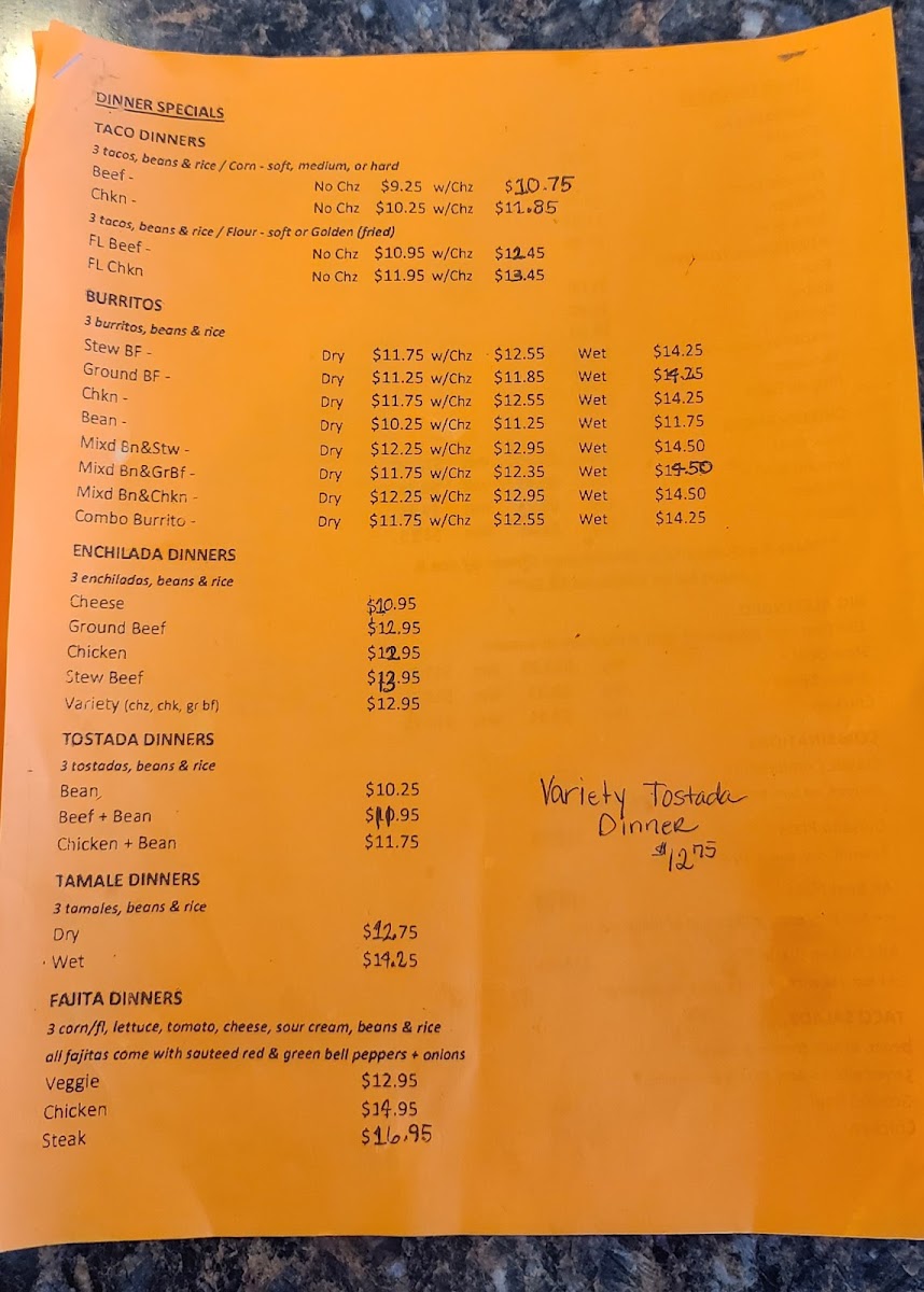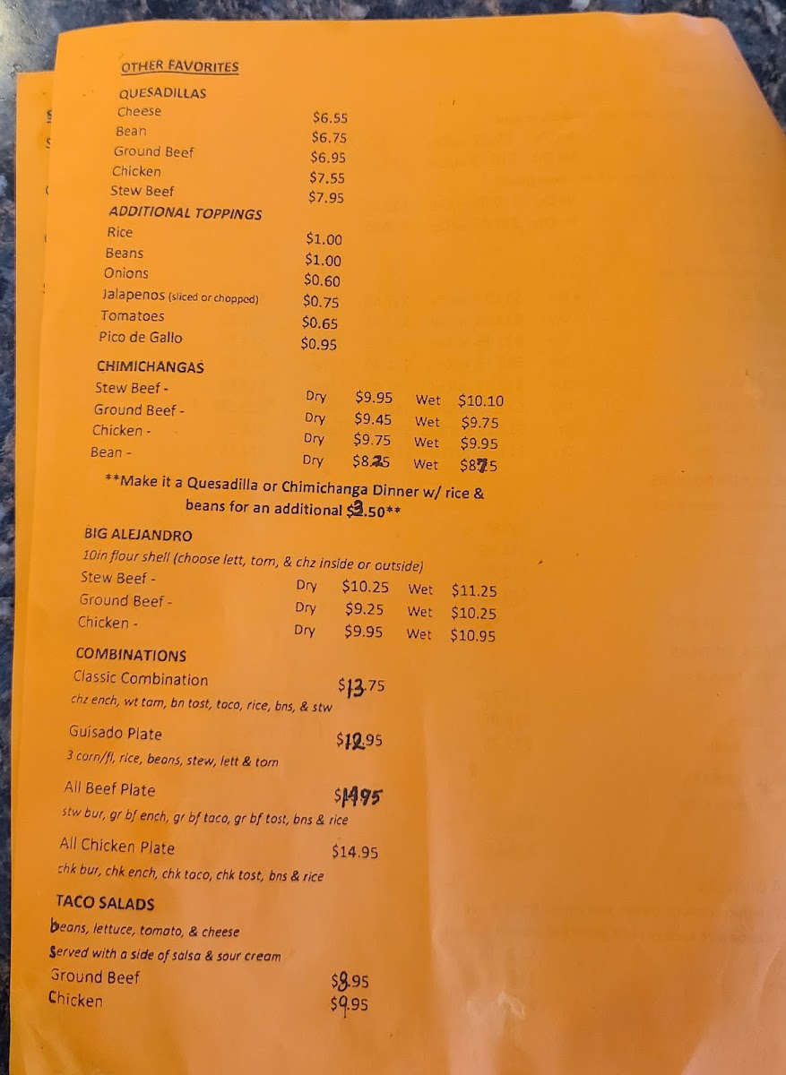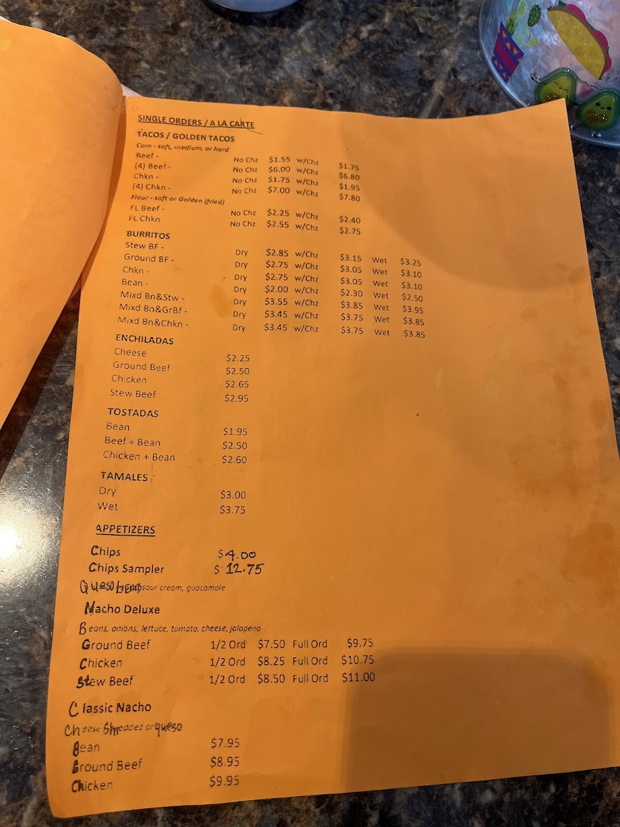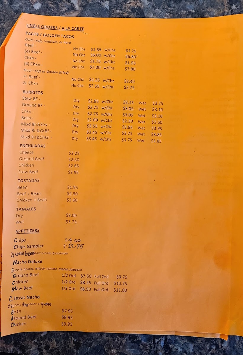 The menu features a variety of options ranging from hearty chicken tacos and beef burritos to shareable plates like nachos supreme and chimichangas. Simple sides, including guacamole, queso, and refried beans, complement the main dishes without overwhelming. These dishes fit naturally with the warm, family-oriented setting, inviting diners to savor authentic recipes without fuss.